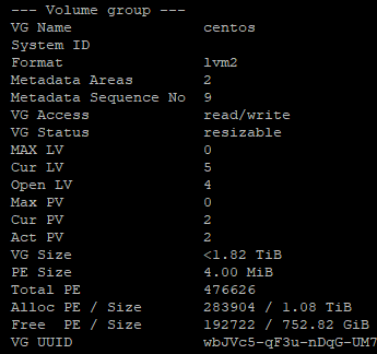 pvchange -x n /dev/sda1 <-- 해당 pv비활성화